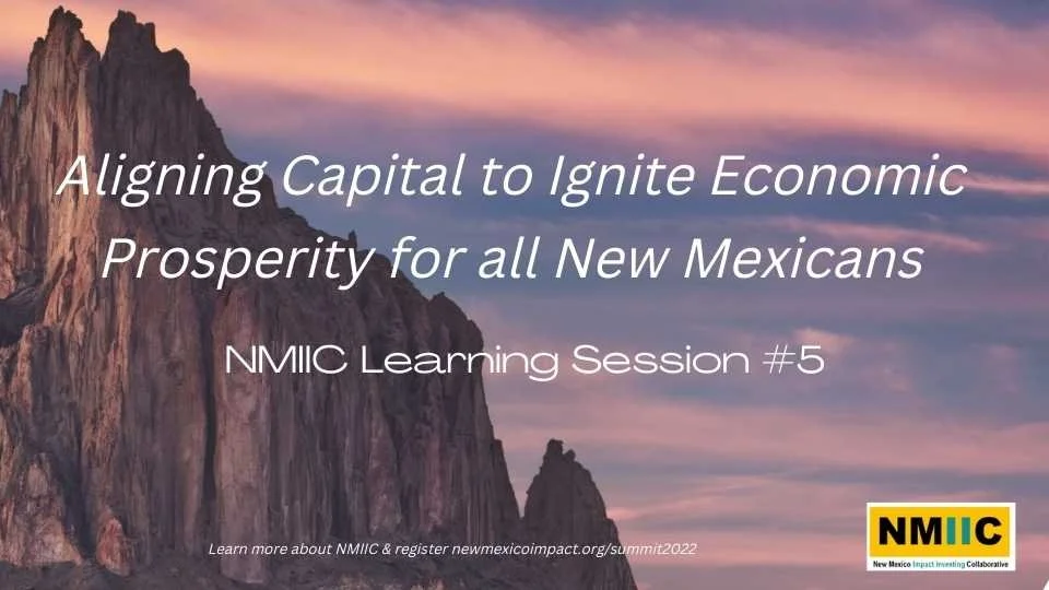 NMIIC will hold its first virtual learning session of 2023, focused on economic development, Tuesday March 14th, 2023. The session will explore the role of impact investors and other key stakeholders in New Mexico’s ecosystem in relationship with ensuring equal access to prosperity across the state. Participants will hear examples from national and regional leaders in navigating bias in their processes and innovating solutions to advance equity.